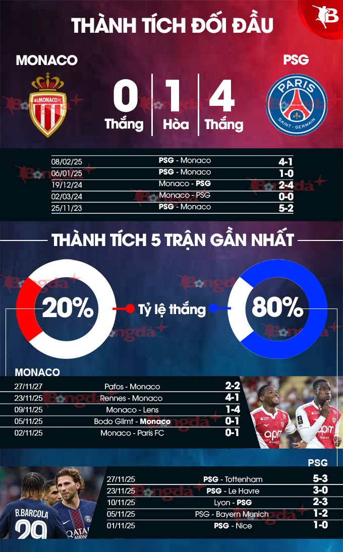 6. Ở 10 lần đụng độ gần nhất trên mọi đấu trường, PSG áp đảo với 6 chiến thắng, 2 trận hòa, còn Monaco chỉ thắng 2. Đặc biệt, ở 5 cuộc chạm trán gần đây, PSG thắng tới 4 và chỉ hòa 1.