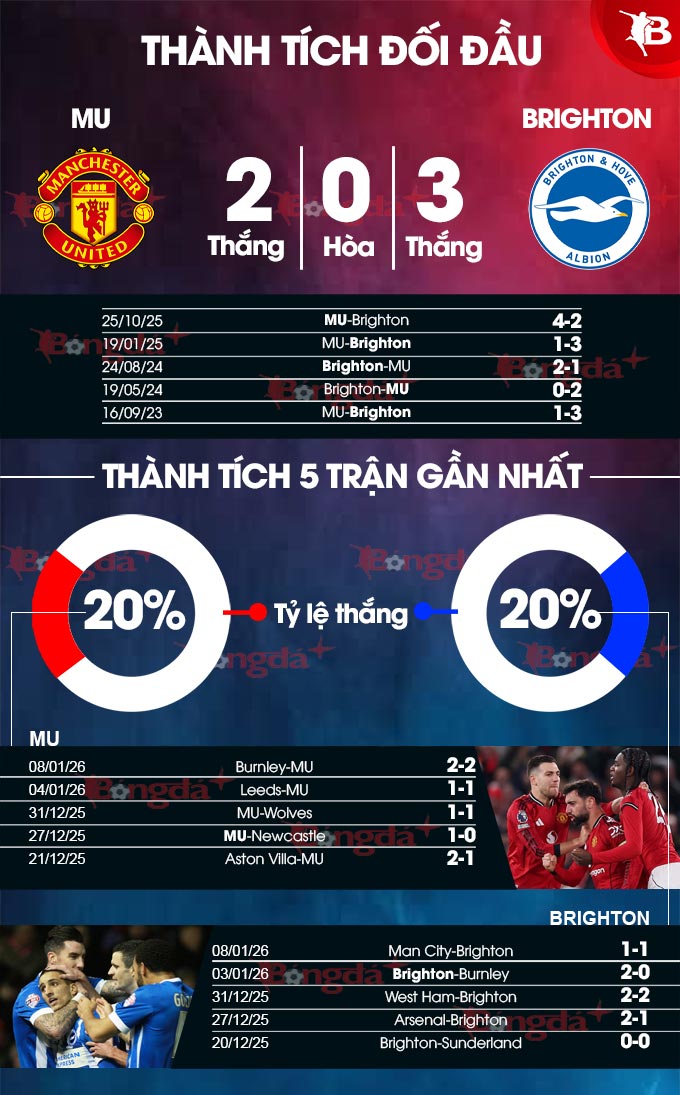 Brighton đã trở thành một đối thủ khó chịu đối với MU trong những năm gần đây, khi giành chiến thắng tại Old Trafford vào các năm 2022, 2023 và 2025. Ở thời điểm hiện tại, "chim mòng biển" có đầy đủ công cụ để gây khó khăn cho Quỷ đỏ, đội bóng mà hàng phòng ngự vẫn chưa thực sự ổn định