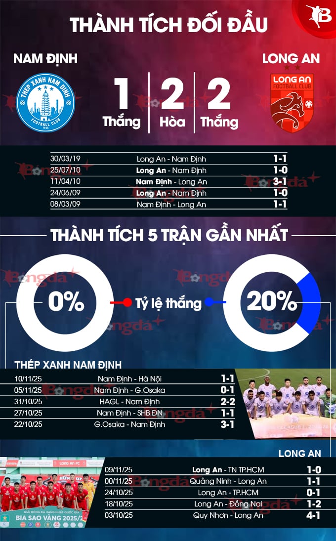 Nam Định đã trải qua chuỗi trận gây thất vọng cực lớn. Đây là thời điểm mà đội bóng thành Nam cần một chiến thắng hơn bao giờ hết. Chiến thắng trước Long An sẽ làm cho màn ra mắt của HLV Mauro thêm trọn vẹn. Bên cạnh đó, đây cũng sẽ là nguồn động viên tinh thần lớn để Nam Định tự tin hơn trong chặng đường sắp tới.