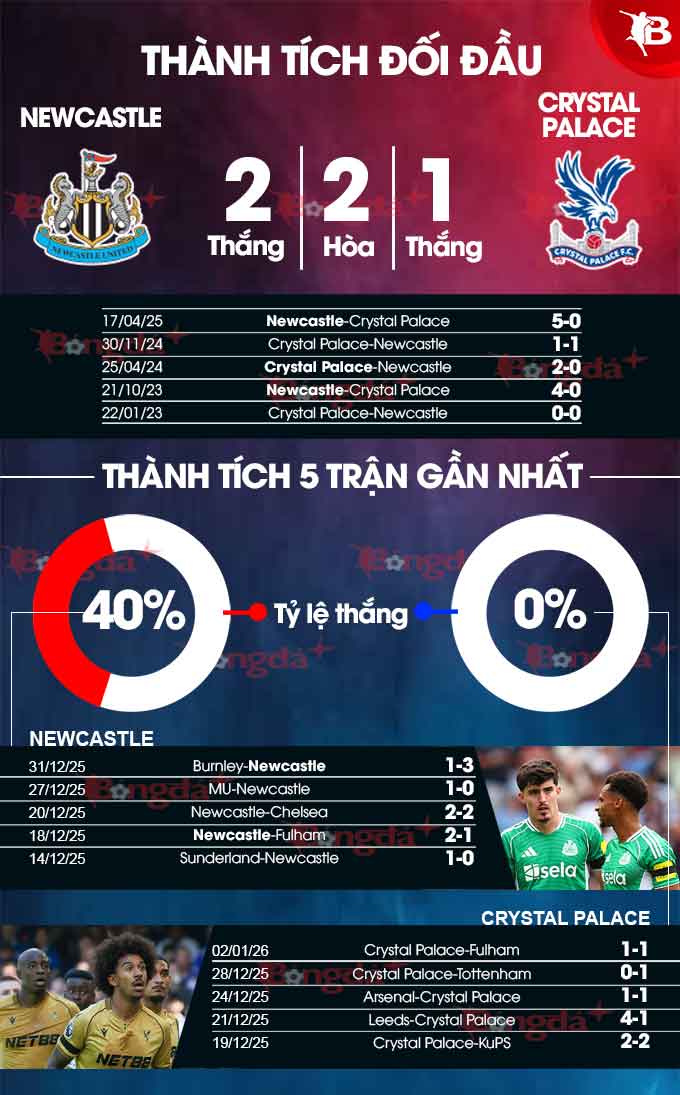 Đây là nhiệm vụ hoàn toàn nằm trong tầm tay, khi Newcastle đang khiến Crystal Palace lép vế hoàn toàn ở những chuyến làm khách gần đây, khi CLB phía nam London đã bị đánh bại với tỷ số 4-0 (mùa 2023/24) và 5-0 (mùa 2024/25). Chuỗi trận không thắng của đội khách tại St James' Park kéo dài gần 5 năm, kể từ chiến thắng 2-1 vào tháng 2/2021 và đáng chú ý, họ không ghi bàn ở 5 lần gần nhất viếng thăm.