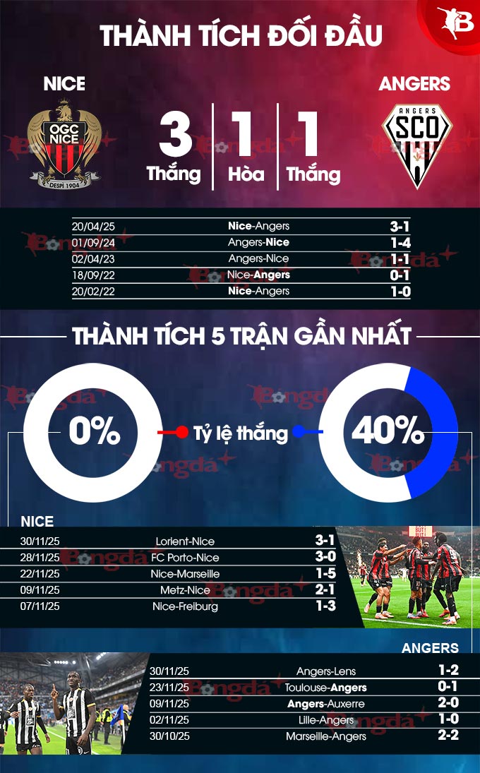 Chưa hết, Nice còn thắng 7/10 trận so T gần đây với Angers. Nhiều khả năng, Nice sẽ khiến Angers ôm hận ở Allianz Arena.
