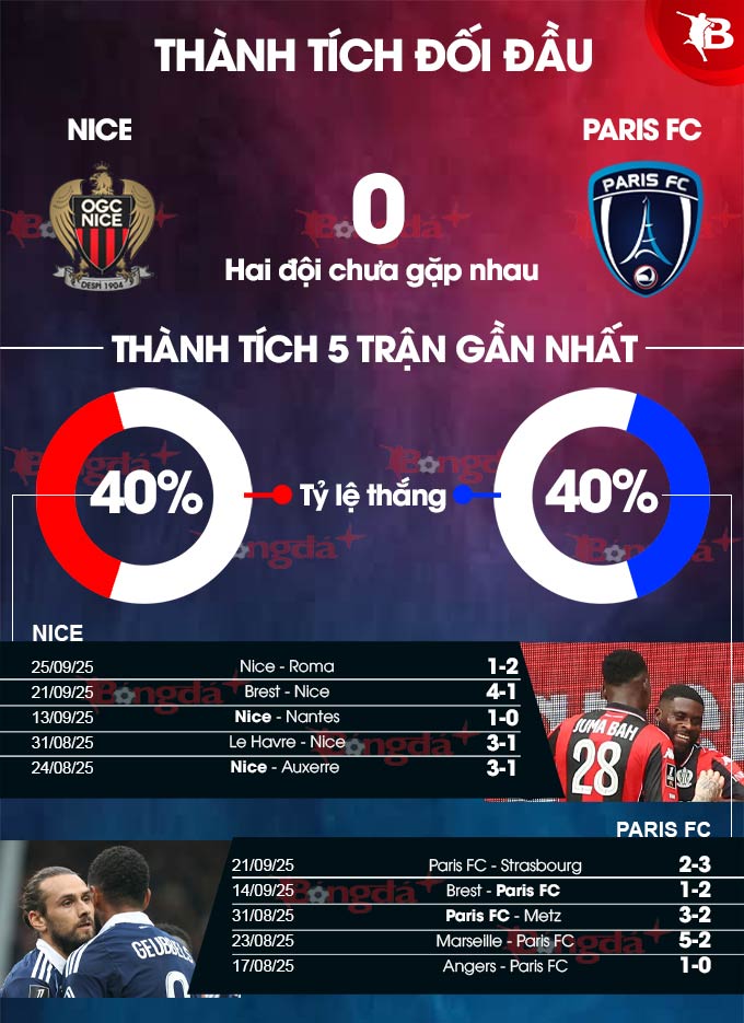 Cả hai đội cùng đều được 6 điểm sau 5 vòng đầu. Rất có thể với những phân tích nói trên, trận này sẽ khép lại mà cả Nice lẫn Paris FC đều không thể giành trọn vẹn 3 điểm.