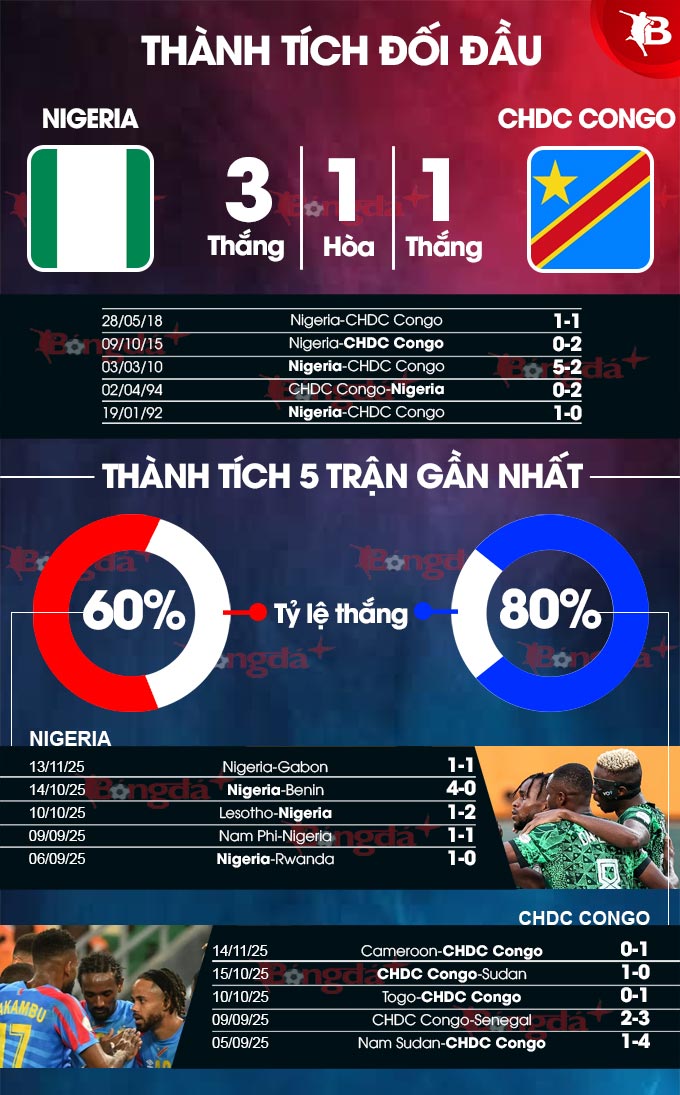Thông tin lực lượng Nigeria vs CHDC Congo mới nhất