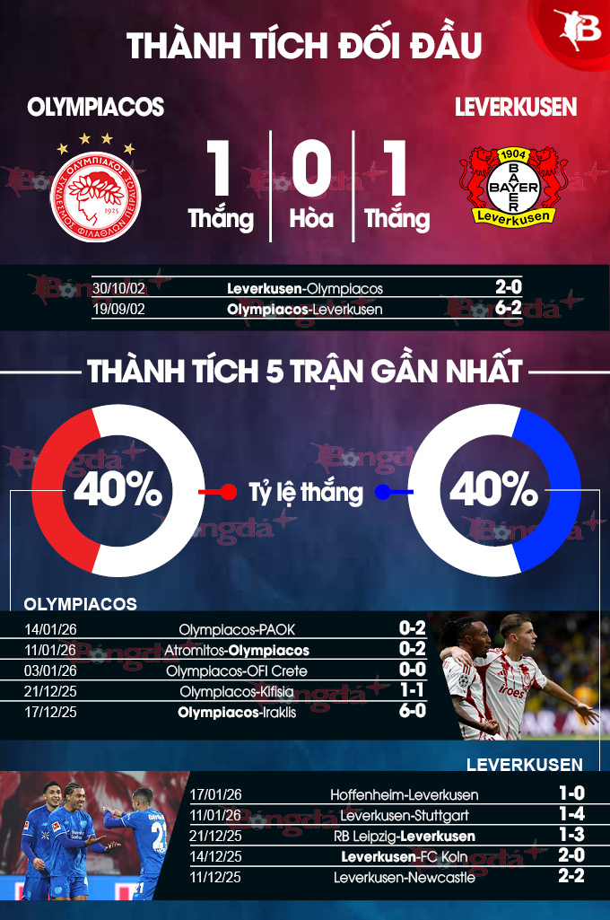 Cần nhấn mạnh rằng, Olympiakos phải tận dụng được phong độ yếu kém gần đây trên sân đối phương của Leverkusen. Họ đã thua 2/3 chuyến xa nhà gần nhất, đồng thời phơi bày những điểm yếu nơi hàng phòng ngự mà đối thủ có thể khai thác.