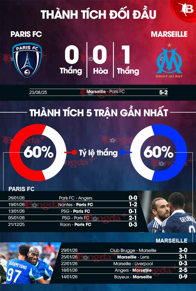 Marseille cần một chiến thắng trước Paris FC để quên đi thất bại đáng hổ thẹn trước Club Brugge khiến họ bị loại cay đắng ở Champions League mùa này. Do đó, nhiều khả năng OM sẽ ca khúc khải hoàn khi rời Paris.