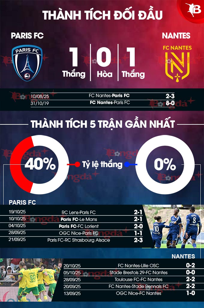 Nếu không cải thiện được thành tích sân khách, Nantes có thể sẽ phải trả giá đắt ở mùa này khi tiếp tục rơi vào cuộc chiến trụ hạng như vài mùa gần nhất. Trong khi đó, Paris FC có nhiều lợi thế để giành chiến thắng ở trận đấu sớm nhất vòng 9 Ligue 1 2025/26.