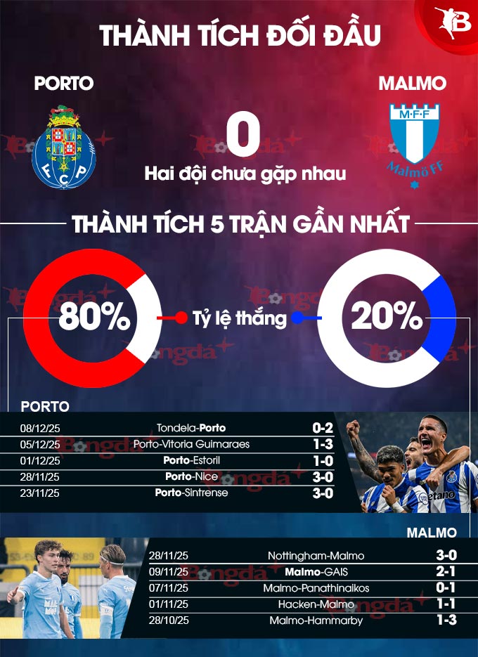 - Ít bàn thắng: Bệ phóng cho thành công của Porto tới từ hàng phòng ngự, khi có thành tích sạch lưới 5/6 trận đấu gần đây. Với Malmo, hàng công đội khách mới ghi vỏn vẹn 2 bàn sau 5 trận tại vòng phân hạng Europa League.