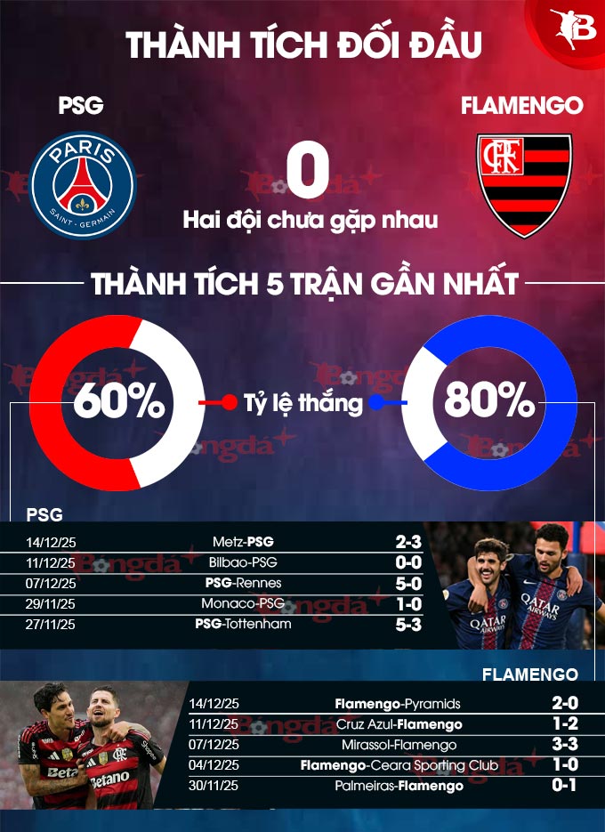 - Hai đội cùng ghi bàn: PSG luôn ghi ít nhất 1 bàn ở 14/15 trận gần nhất. Còn Flamengo cũng làm được điều tương tự ở cả 12 trận vừa qua. Ngoài ra, 5/6 chuyến xa nhà vừa qua của Flamengo cũng đều khép lại với ít nhất 1 bàn cho mỗi đội.