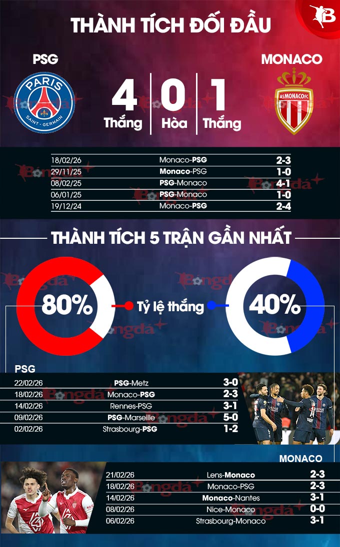 Cần nhấn mạnh thêm rằng, PSG bất bại trong 5 lần đối đầu gần nhất với Monaco tại Paris và chưa từng thua một trận đấu loại trực tiếp nào trước đội bóng Công quốc trong thế kỷ này.
