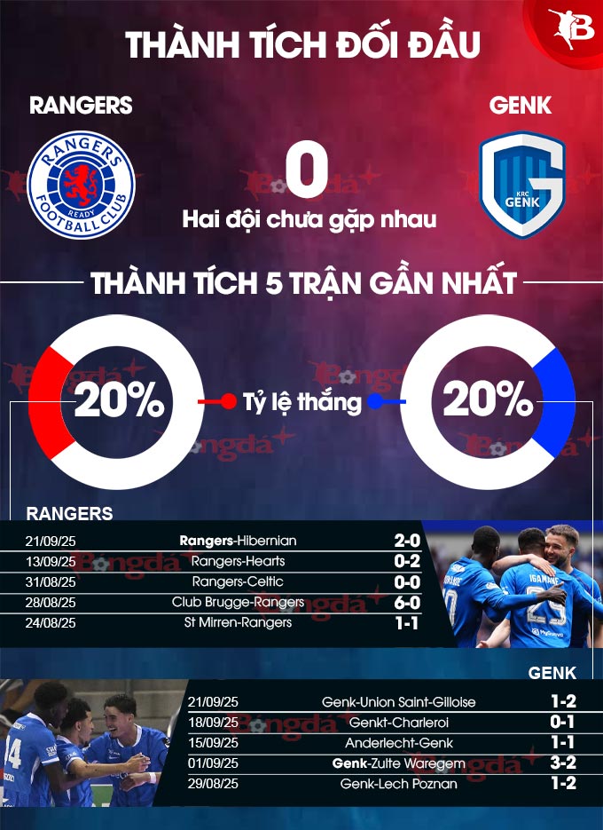Trong khi Rangers chỉ thắng 1/6 trận mới nhất thì Genk thắng 2/6 trận vừa xong. Trên sân nhà Ibrox, Rangers chơi không quá hay khi chỉ thắng 2/6 trận gần nhất.