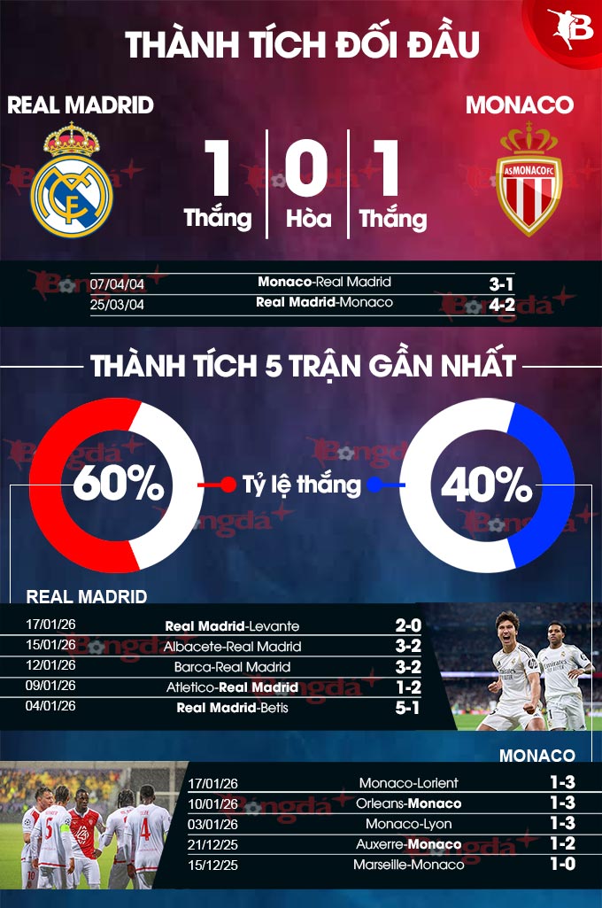 Sẽ là một chiến thắng hiển nhiên cho Real Madrid trong lần đụng độ sắp tới. Nhưng trong bối cảnh còn nhiều rối ren, có thể thầy trò ông Arbeloa chỉ thắng Monaco với cách biệt 1 bàn.