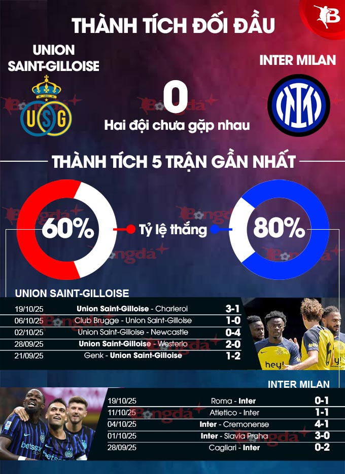Ở vòng đấu này, Inter có cơ hội để tích lũy thêm 3 điểm khi chỉ phải gặp Union Saint-Gilloise. Union Saint-Gilloise không thể so sánh với Inter về truyền thống và tên tuổi. Họ đang đứng thứ 20 ở vòng phân hạng Champions League khi mới có 3 điểm sau 2 lượt đấu.
