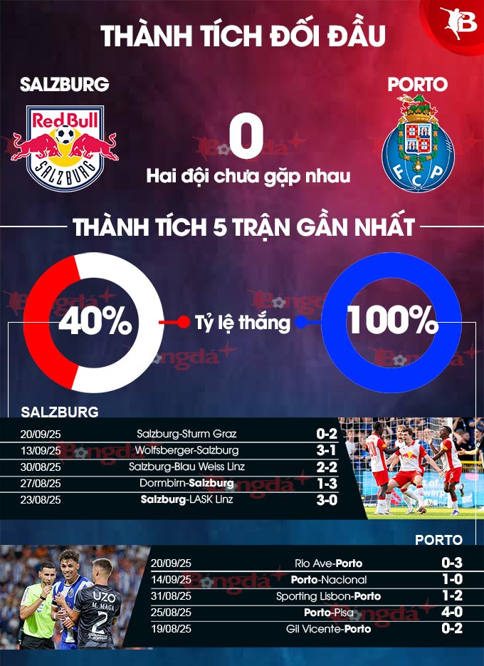 So với Porto, Salzburg đứng thứ 5 ở giải VĐQG Áo 2025/26. CLB này đang chơi khá dở ở giải trong nước khi chỉ giành được 11 điểm sau 7 vòng đấu. Rõ ràng, họ đang thua kém nhiều so với Porto.