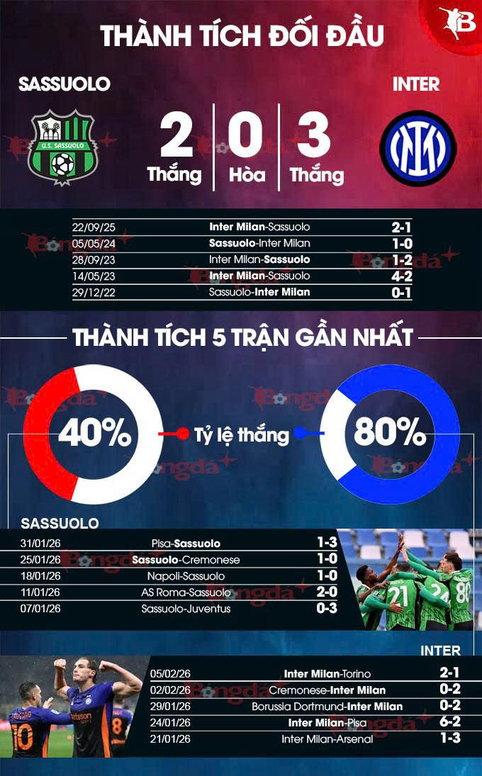 Phân tích phong độ Sassuolo vs Inter Milan