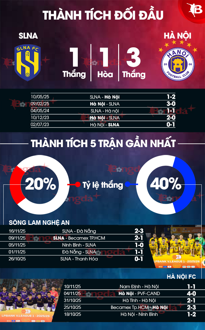 Đá sân nhà, nhưng SLNA không được đánh giá cao trong cuộc đối đầu này. Điều này cũng chẳng lạ khi cầu thủ xứ Nghệ đa số là những cầu thủ trẻ, trong lúc đó, những gương mặt nổi trội đều đã đầu quân cho các đội bóng khác. Vì thế, không ngạc nhiên khi ở 5 trận gần nhất, Hà Nội đã giành đến 3 chiến thắng, trong lúc SLNA chỉ có 1 thắng và 1 hoà.