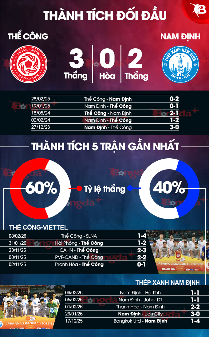 Phân tích phong độ Thể Công Viettel vs Nam Định