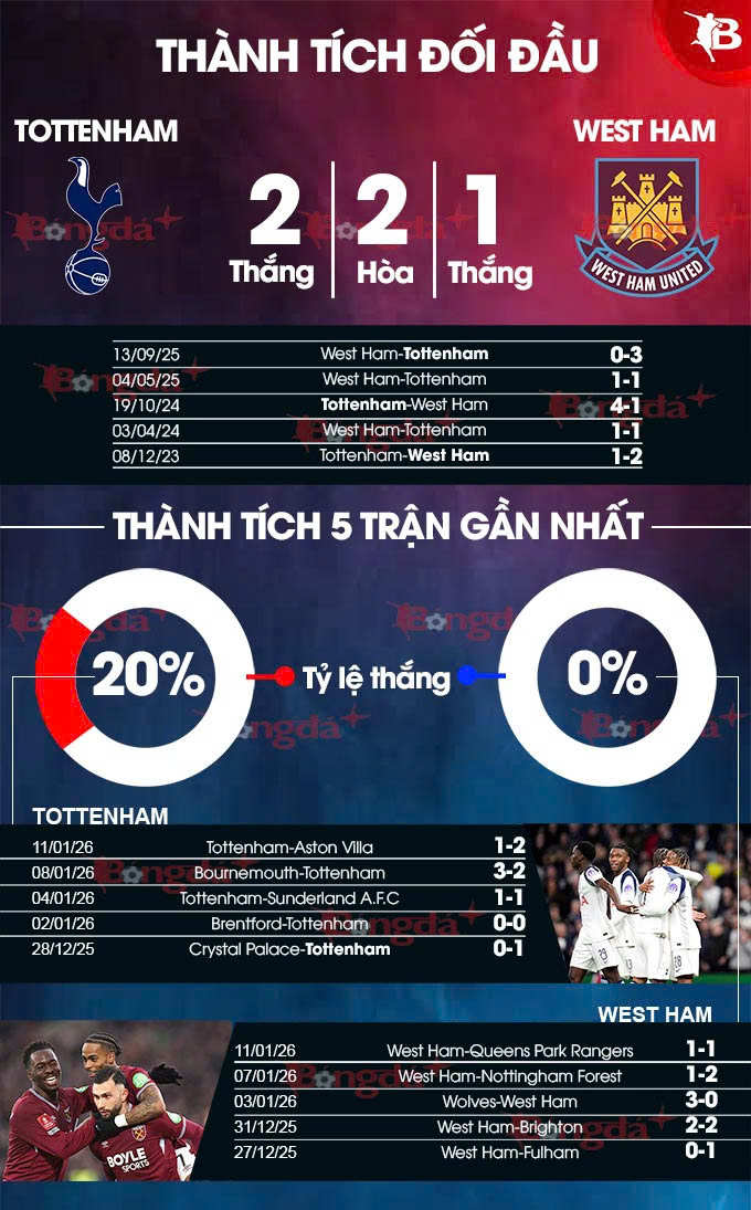 Cũng cần phải nói thêm rằng, West Ham đang là đội thủng lưới nhiều nhất ở Premier League 2025/26 từ những tình huống đá phạt góc (12). Ngược lại, Tottenham đang vô đối ở khả năng chuyển hóa những quả phạt góc thành bàn (11). Nói tóm lại, điểm yếu của West Ham chính là "mỏ vàng" đang được Tottenham khai thác hiệu quả nhất. Cộng thêm với việc Tottenham đã bất bại 4 trận liên tiếp trước đối thủ từng thua họ tới 0-3 ở lượt đi, có lẽ West Ham nên chuẩn bị sẵn tinh thần cho khả năng họ sắp phải nhận thêm kết quả không như ý.