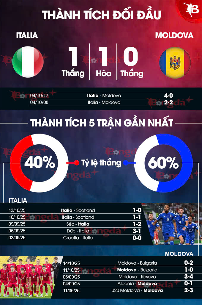Như vậy, Italia sẽ cần phải thắng Moldova bằng mọi giá trước khi lần lượt gặp Bosnia và Ba Lan. Lúc này, phong độ của Italia và Moldova không có nhiều sự chênh lệch.