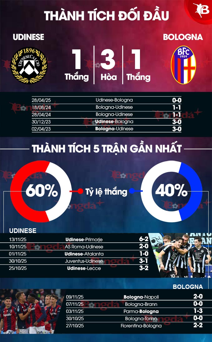 Mặc dù đang có phong độ rất ấn tượng trên sân nhà gần đây, nhưng Udinese có lẽ khó có thể nghĩ tới việc đánh bại một Bologna đang thi đấu thăng hoa từ đầu mùa giải.