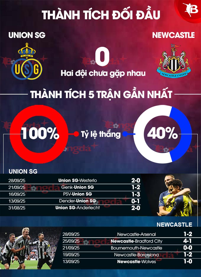 Màn trình diễn bùng nổ trên sân nhà của Union SG cùng phong độ ấn tượng từ đầu mùa giúp đội bóng Bỉ nhiều khả năng sẽ tiếp tục tạo bất ngờ ở màn tiếp đón Newcastle, những người đang thể hiện bộ mặt tệ hại trên sân khách.
