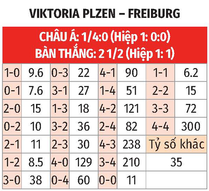 Còn với Freiburg, họ thua 1/4 trận mới nhất trên sân khách. Dù vậy, Freiburg sở hữu kinh nghiệm dày dặn và có đội hình chất lượng hơn nhiều so với Plzen. Do đó, khả năng cao Freiburg sẽ có niềm vui.