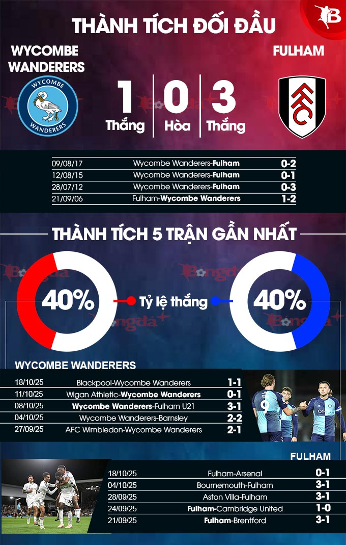 Với việc đang có chuỗi 5 trận bất bại liên tiếp, Wycombe Wanderers hứa hẹn sẽ khiến Fulham gặp khó khăn, nhất là trong bối cảnh đối thủ của họ đang thua tối tăm mặt mũi. Cuối tuần vừa rồi, Fulham mới thất thủ 1-2 trên sân của Newcastle. Như vậy, họ đã trải qua 4 trận liền không giành được điểm ở Premier League.