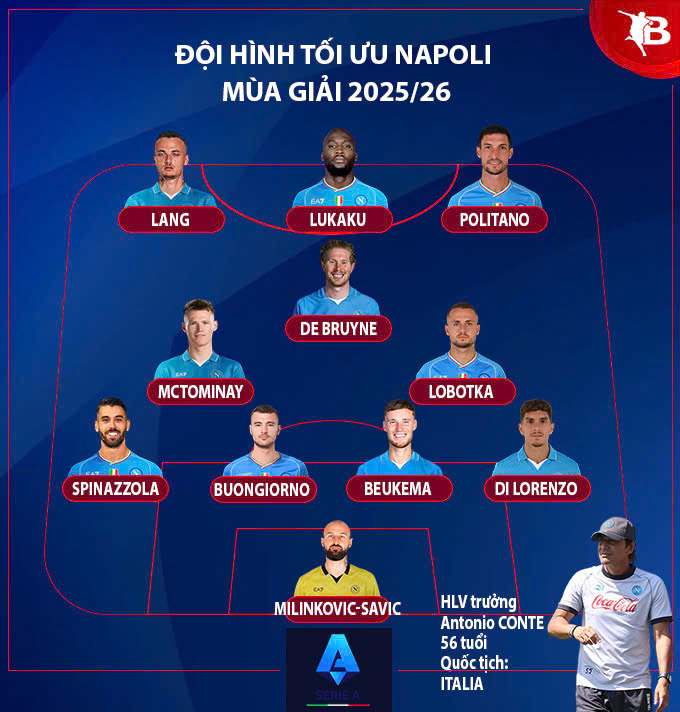 Dù sự nghiệp gắn liền với sơ đồ 3-5-2, Conte đã chuyển sang 4-3-3 tại sân Diego Armando Maradona. Nhiều khả năng Napoli sẽ tiếp tục ra sân với hệ thống này trong mùa giải 2025/26 tới.
