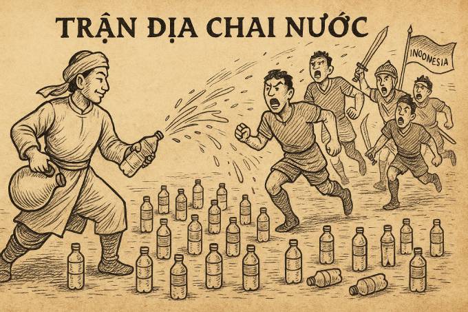 Giữa cơn địa chấn tại Jakarta, khi tiếng trống cổ vũ vang trời, một người hậu cần vô danh bên phía Việt Nam lặng lẽ bước dọc đường biên, tay cầm thùng nước, chân đi khoan thai, ánh mắt xa xăm như đang ngẫm ngợi chiến lược Tôn Tử.