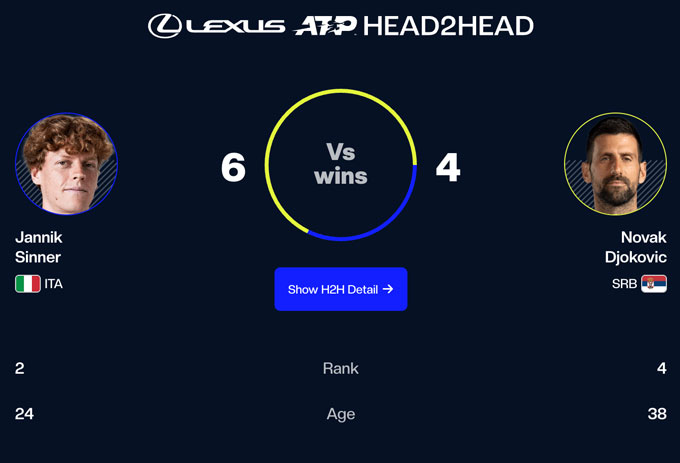 Theo chỉ số Infosys ATP Win/Loss, Djokovic (hiện đứng số 4 thế giới) đang có thành tích 31 thắng – 11 thua trong năm nay, sau khi lọt vào cả bốn trận bán kết Grand Slam mùa 2025.