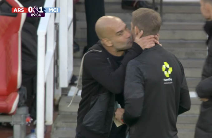Pep Guardiola 'cưỡng hôn' trọng T ở trận Man City hòa Arsenal?