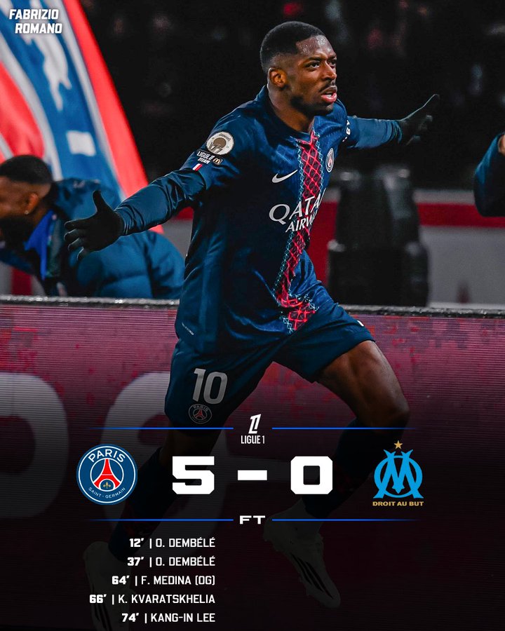 Chiến thắng tưng bừng này giúp PSG vững vàng ở ngôi đầu BXH Ligue 1 với 51 điểm sau 21 trận. Họ hiện đang hơn đội xếp thứ hai là Lens 2 điểm. Trong khi đó, Marseille đứng ở vị trí thứ 4 với 39 điểm.