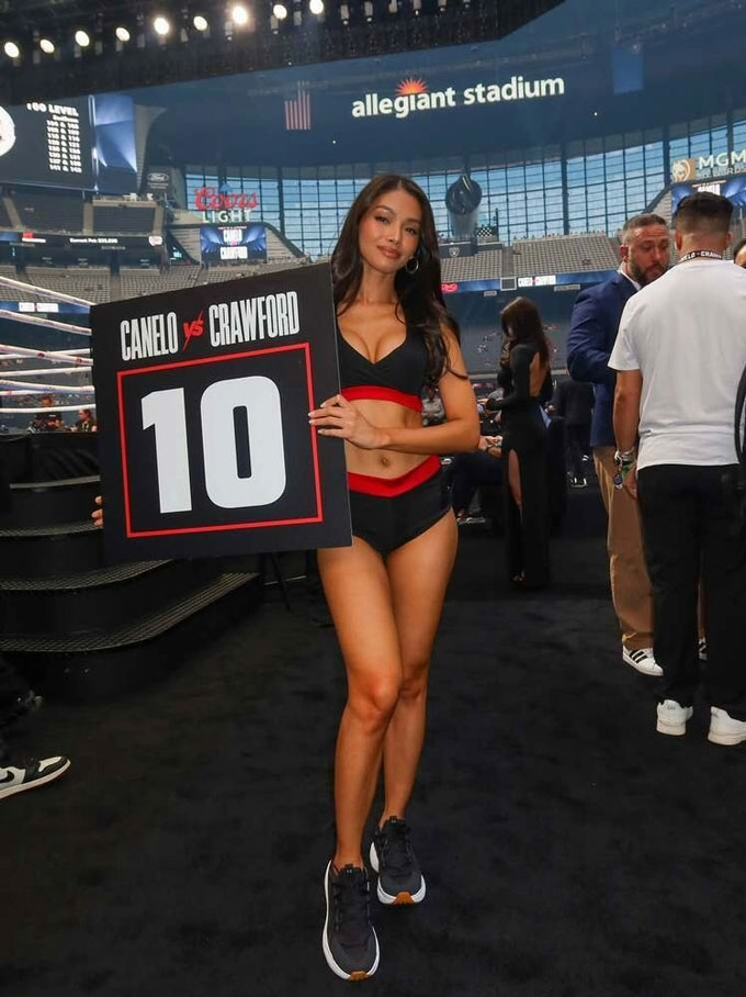 Ring girl nóng bỏng chiếm sóng trận đại chiến quyền Anh giữa Canelo Alvarez và Terence Crawford