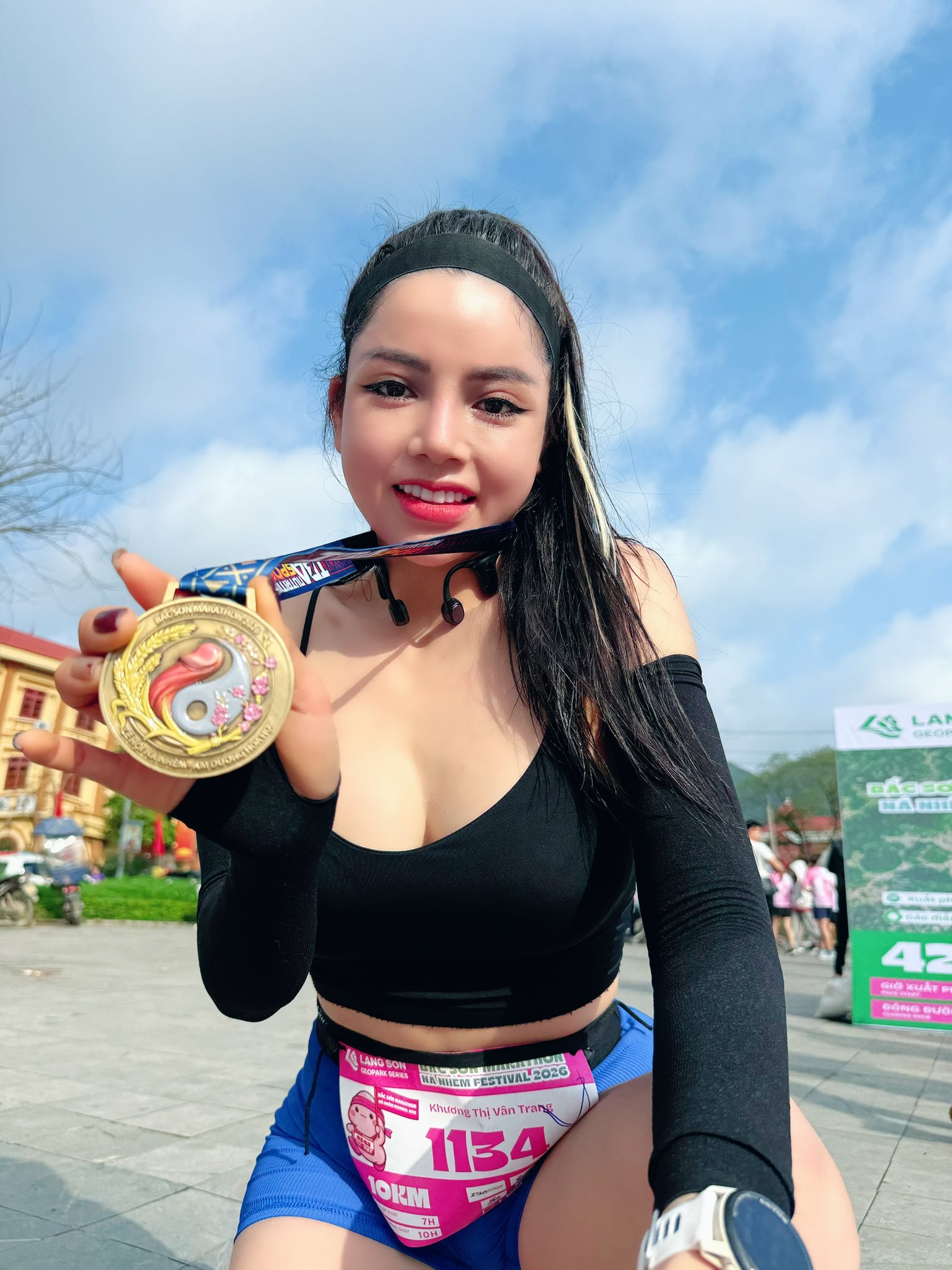 Runner Vân Trang gây sốt ở hội vật làng