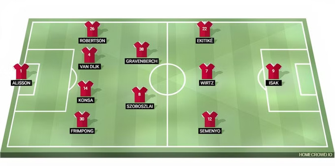 Cody Gakpo không có phong độ tốt gần đây, điều này giúp Slot dễ dàng quyết định dùng Ekitike ở cánh trái, Semenyo ở cánh phải và Wirtz chơi số 10. Điều này cho phép Liverpool dùng cả hai tiền đạo, với Isak đá cắm trong một hệ thống tấn công cực kỳ bùng nổ.
