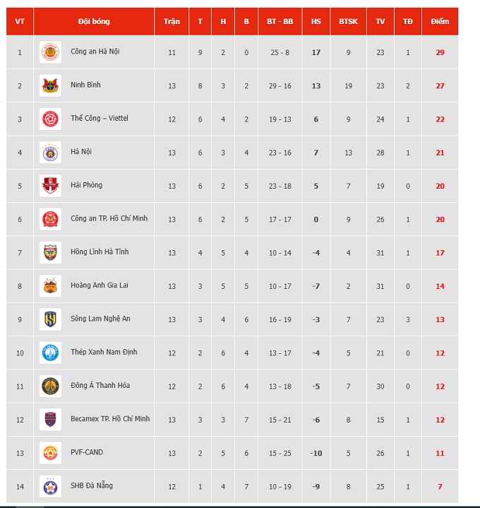 Trong lúc đó, Nam Định và Thể Công sẽ phải ‘đại chiến” lẫn nhau. Đương kim vô địch Nam Định đang sa sút khi chỉ có 12 điểm sau 12 trận. Trong lúc đó, Thể Công phải sắm vai bám đuổi CAHN và Ninh Bình ở Top 3. Với cục diện ấy thì cả Nam Định lẫn Thể Công đều thừa hiểu, một thất bại sẽ khiến giấc mộng ngôi cao của họ trở nên bấp bênh hơn.