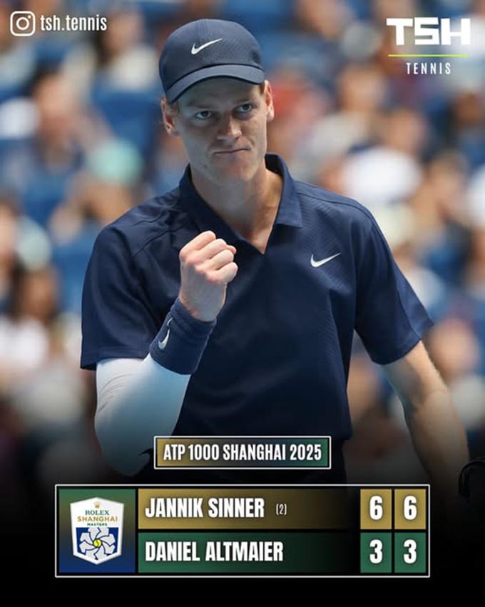 Giải Rolex Shanghai Masters không phải là sân chơi may mắn cho các nhà vô địch trong những năm gần đây, nhưng Jannik Sinner đã có khởi đầu ấn tượng cho nỗ lực giành chức vô địch liên tiếp vào thứ Bảy tại giải Chinese ATP Masters 1000. Tay vợt số 2 trên bảng xếp hạng ATP đã dễ dàng vượt qua Altmaier với tỷ số 6-3, 6-3 tại Nhà thi đấu Qizhong Forest Sports City để khởi động chiến dịch bảo vệ ngôi vương của mình.