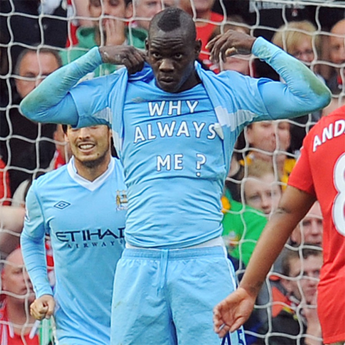 Bên ngoài sân cỏ, “trai hư” cũng có những màn trình diễn bùng nổ, khiến hàng xóm và cảnh sát Greater Manchester phải khó chịu. "Why Always Me?" là một trong những màn ăn mừng bàn thắng đáng nhớ cuối cùng của anh. Thật khó tìm một cầu thủ đặc biệt như Balotelli ở Ngoại hạng Anh bây giờ.