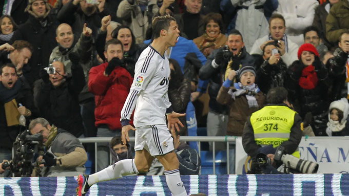 Cristiano Ronaldo đã có màn trình diễn xuất sắc trong trận derby Madrid, giữa Atletico Madrid và Real Madrid vào ngày 1/4/2012. Los Blancos khi đó đang dẫn đầu cuộc đua vô địch và cần một chiến thắng tại Vicente Calderon để tiếp tục theo đuổi danh hiệu. Cristiano Ronaldo đã xuất hiện đúng lúc đội bóng của Jose Mourinho đang cần nhất. Ngoài cú hat-trick ngoạn mục, Ronaldo còn kiến tạo cho Jose Callejon ghi bàn ở phút 87, ấn định chiến thắng 4-1 cho đội nhà.