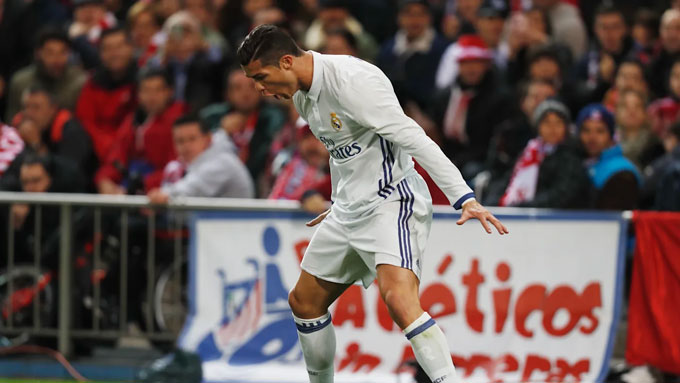 Vào ngày 19/11/2016, Real Madrid đã có trận derby Madrid trên sân Vicente Calderon với Atletico Madrid. Cristiano Ronaldo đã tạo nên một trận đấu đáng nhớ khi lập một cú hat-trick ngoạn mục. Bàn thắng đầu tiên của anh là một cú đá phạt đền ở phút 23. Sau đó, Ronaldo thực hiện thành công quả phạt đền ở phút 71. Siêu sao người Bồ Đào Nha hoàn tất cú hat-trick của mình bằng một cú đệm bóng từ đường chuyền của Gareth Bale, sau khi bứt tốc với tốc độ kinh hoàng.