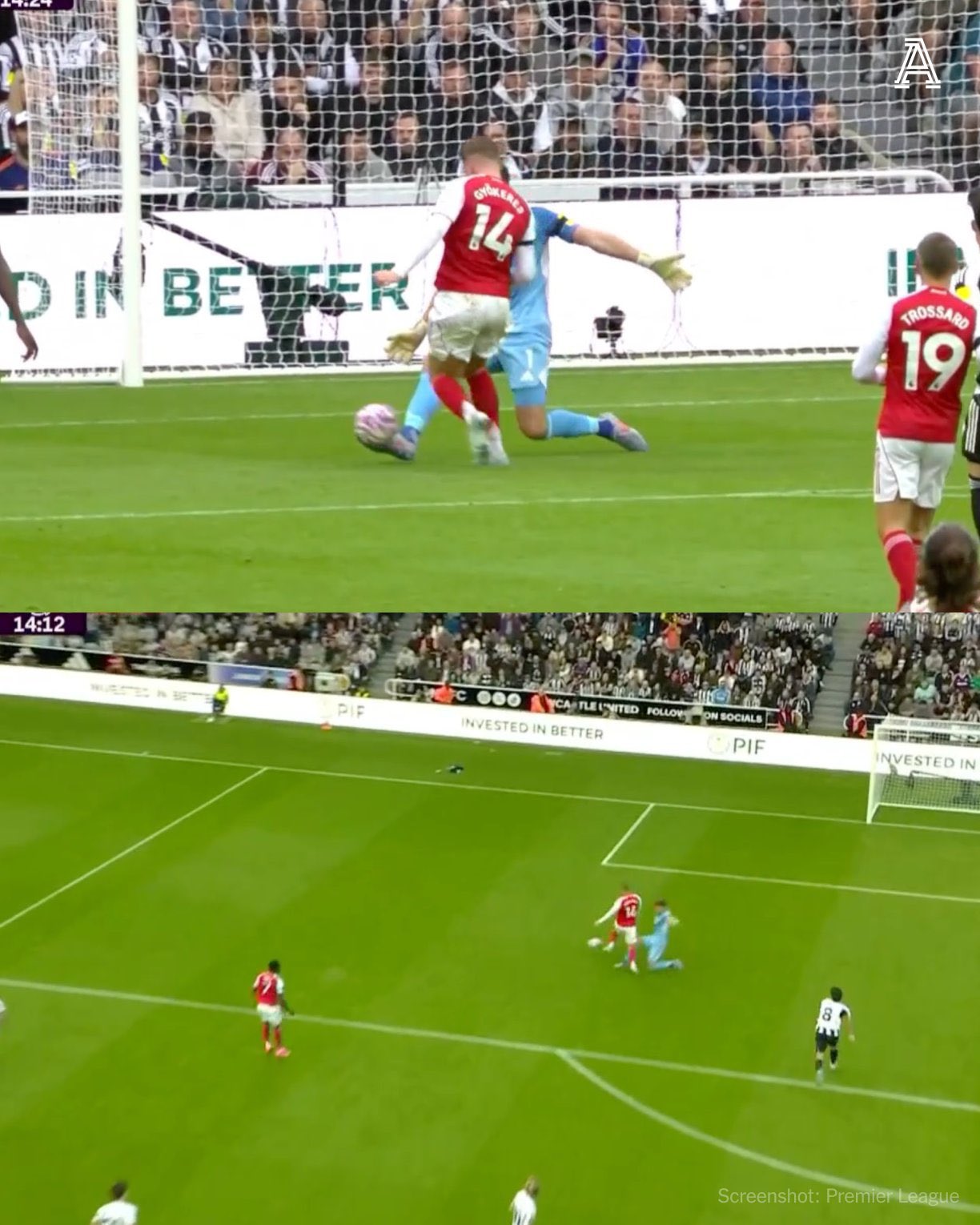 Không được hưởng 11m, Arsenal sau đó còn bị thủng lưới. Lúc này, họ đang bị Newcastle dẫn trước 1-0.