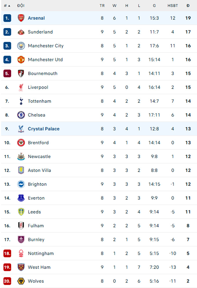 Lúc này, Arsenal đang dẫn đầu Ngoại hạng Anh với 19 điểm, hơn đội nhì Sunderland 2 điểm song đá ít hơn 1 trận. Như vậy, nếu hạ Palace, Pháo thủ sẽ nới rộng cách biệt với đối thủ lên thành 5 điểm.