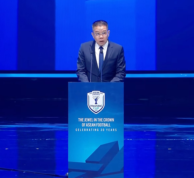 Ông Khiev Sameth, Chủ tịch Liên đoàn Bóng đá Đông Nam Á phát biểu tại buổi lễ