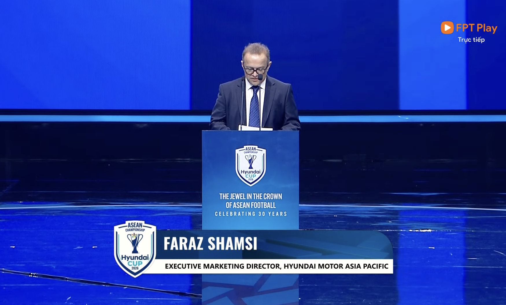 Đại diện của. Huyndai, nhà T trợ chính của giải đấu phát biểu tại buổi lễ bốc thăm