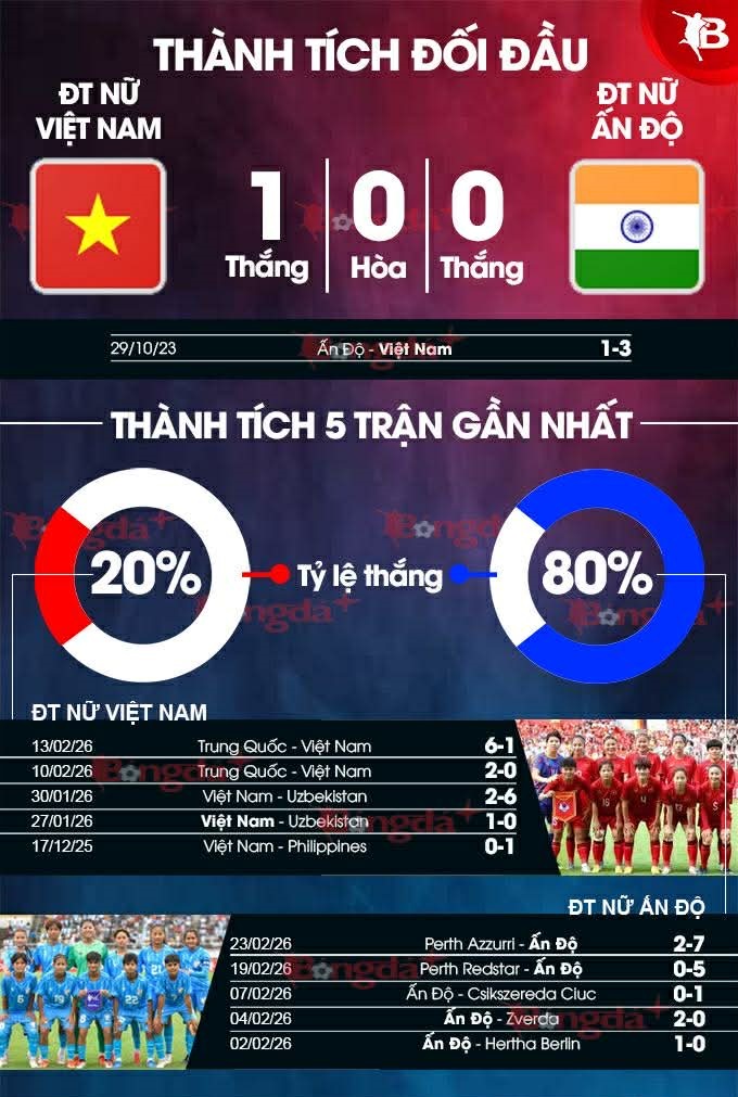 - Ấn Độ giành vé dự VCK nhờ chiến thắng gây sốc trước chủ nhà Thái Lan ở vòng loại. Cần biết rằng, đây là đối thủ “xương xẩu” của ĐT nữ Việt Nam mỗi lần giáp mặt nên việc Ấn Độ loại được Thái Lan là lời cảnh báo có sức nặng. Chắc chắn, đoàn quân của ông Mai Đức Chung sẽ không thể xem thường đối thủ, mà phải chơi hết mình nếu muốn có chiến thắng.