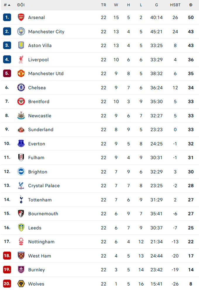 Hiện tại, Man City đang xếp thứ 2 ở Ngoại hạng Anh với 43 điểm, kém đội dẫn đầu là Arsenal 7 điểm. Trong khi đó, Wolves đứng bét bảng với vỏn vẹn 8 điểm.