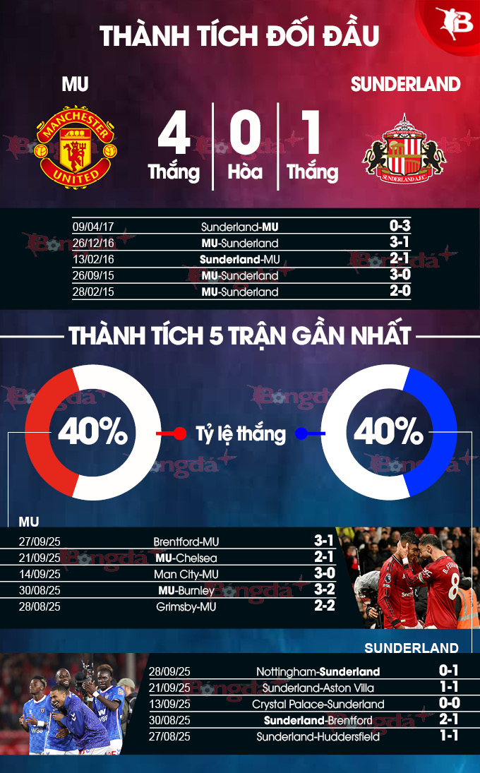 Ngay cả khi Sunderland đã có 11 điểm sau 6 trận đấu tại Ngoại hạng Anh mùa này (thắng 3, hòa 2, thua 1), khởi đầu tốt nhất của một đội bóng mới lên hạng kể từ West Ham United mùa 2012/13 (cũng 11 điểm), thì MU cũng vẫn tự tin giành chiến thắng trước Mèo đen nhờ tiếng nói lịch sử và thành tích tốt trên sân nhà.