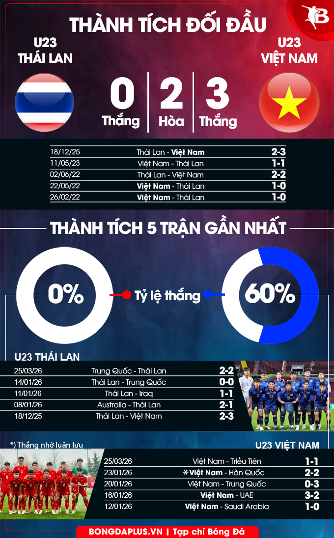 13h50'HLV Đinh Hồng Vinh chia sẻ: “U23 Thái Lan là tập thể chất lượng, nhiều cầu thủ thi đấu ở các giải chuyên nghiệp nên khả năng xử lý tình huống và chịu áp lực rất tốt. Họ có lối chơi kỹ thuật, tốc độ và chuyển trạng thái rất nhanh”. Từ việc theo dõi trận hòa 2-2 của U23 Thái Lan trước U23 Trung Quốc ở trận ra quân, Ban huấn luyện U23 Việt Nam đã có thêm nhiều dữ liệu quan trọng để phân tích đối thủ.