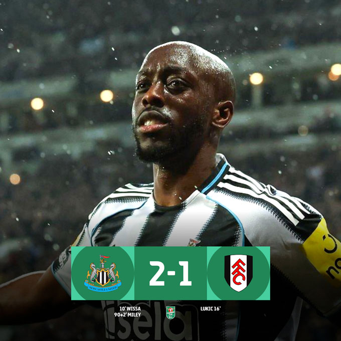 Newcastle giành chiến thắng chung cuộc 2-1 và là đội thứ 3 giành vé vào bán kết League Cup sau Chelsea và Man City.