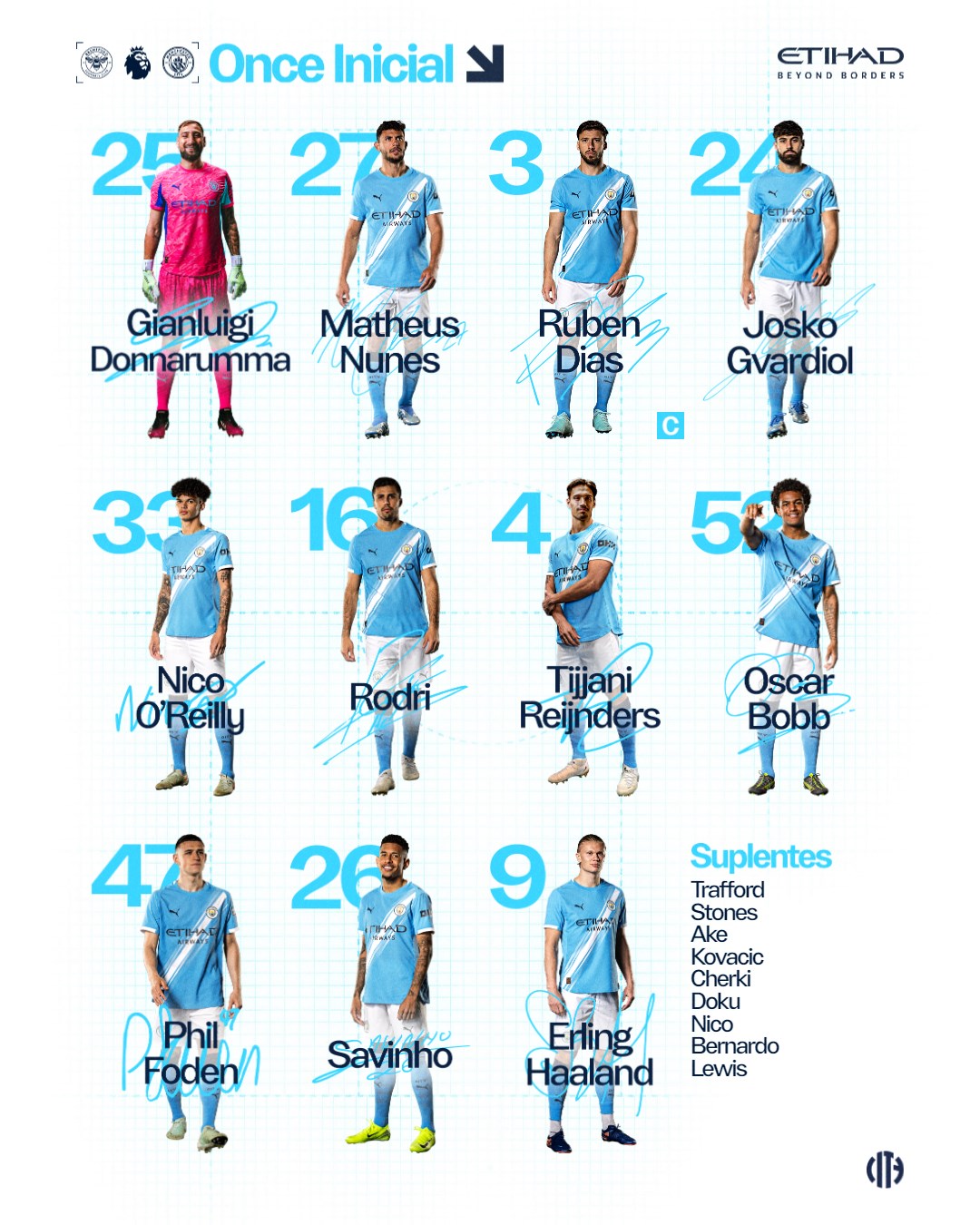 Ở chuyến làm khách của Brentford, Man City không có sự phục vụ của Abdukodir Khusanov, Rayan Ait-Nouri, Omar Marmoush và Rayan Cherki vì chấn thương. Bên phía đội chủ nhà, tất cả các cầu thủ đều sẵn sàng xung trận.