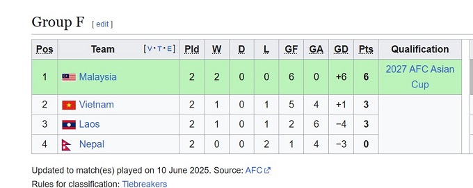 Hiện tại, Malaysia vẫn đang dẫn đầu bảng F với 6 điểm, Việt Nam và Lào cùng có 3 điểm, còn Nepal chưa giành được điểm nào. Chính vì vậy, hai lượt trận gặp Nepal được xem là “cửa sinh tử” với đoàn quân áo đỏ. Giành trọn 6 điểm không chỉ giúp tuyển Việt Nam củng cố vị thế mà còn mở rộng cánh cửa vượt lên Malaysia trong trường hợp đối thủ bị xử thua.